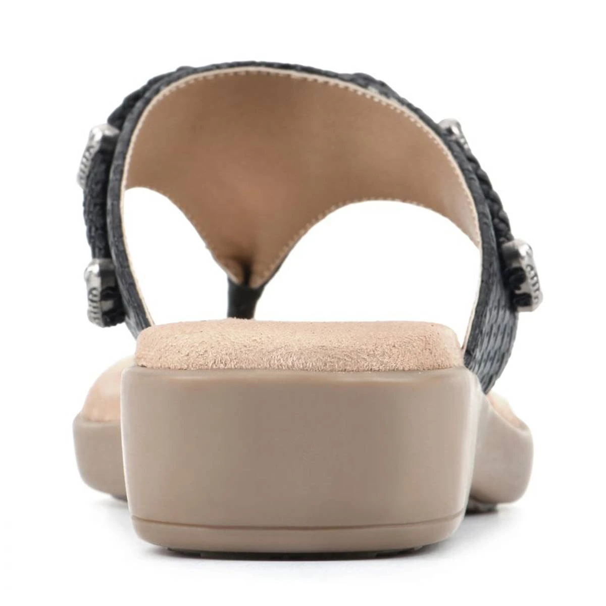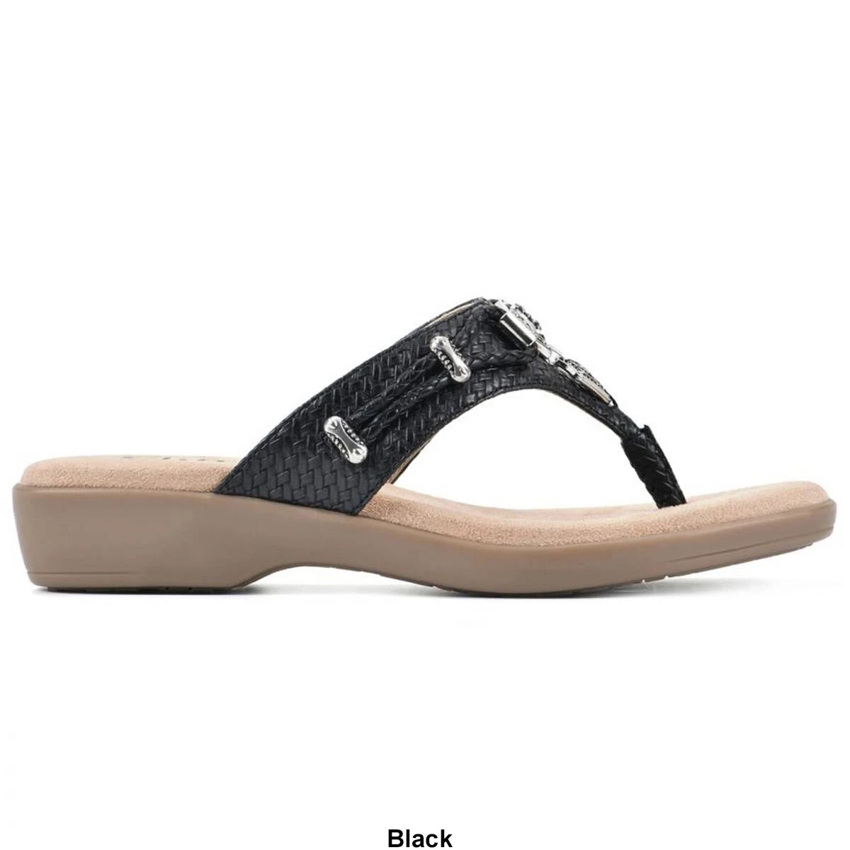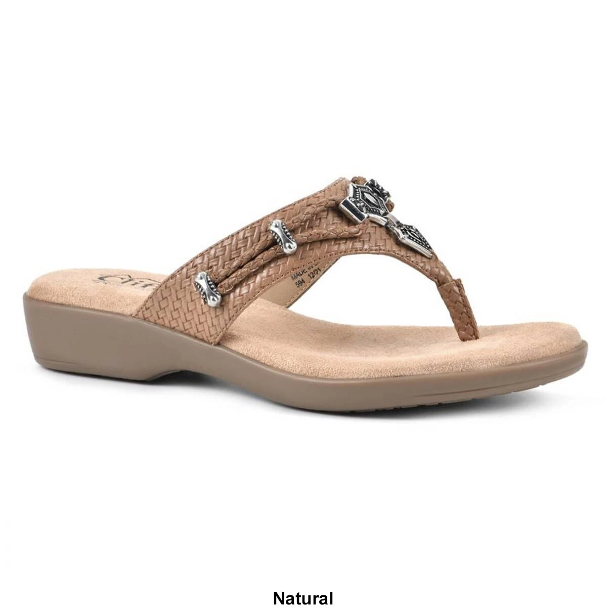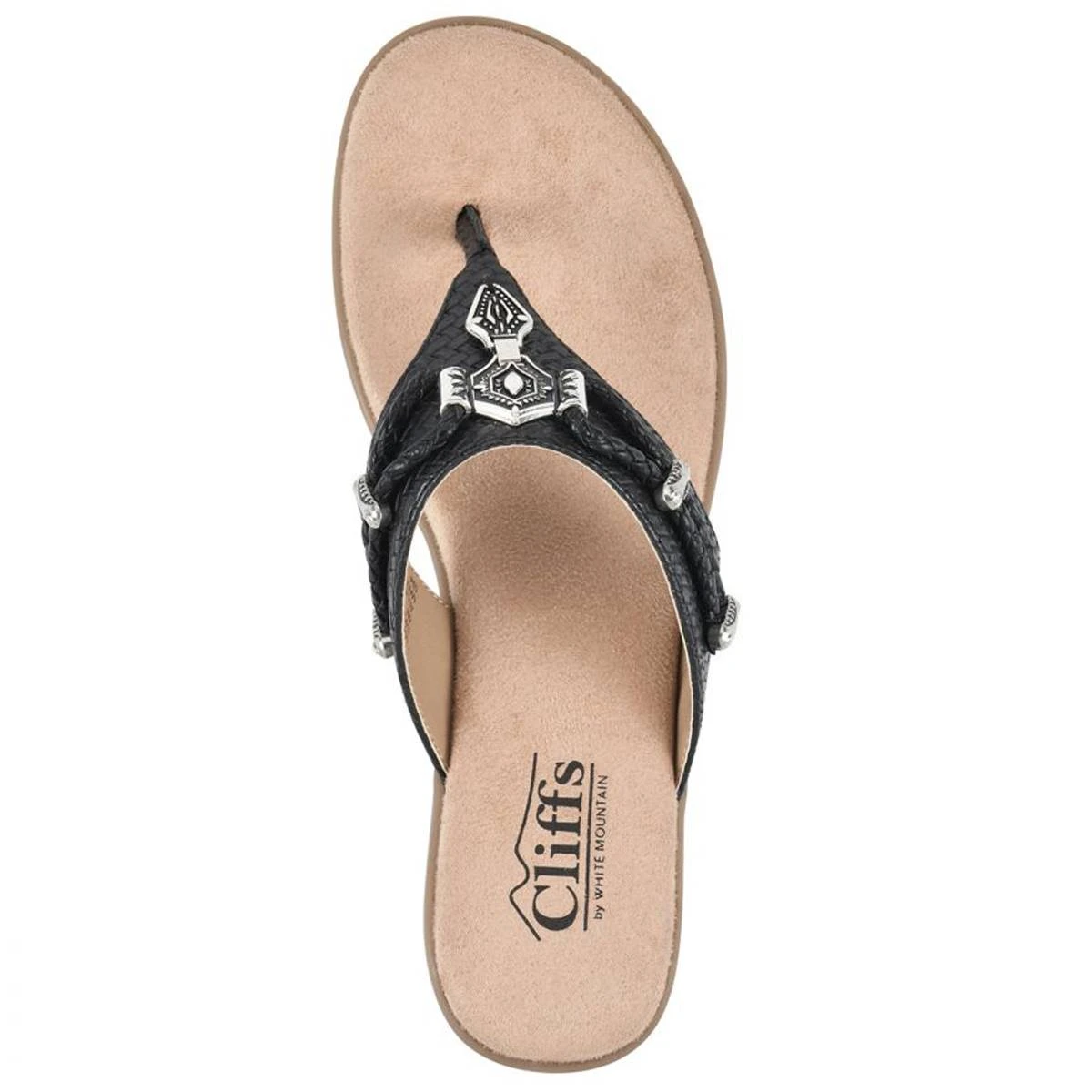 Enjoy all day comfort in the Womens Cliffs by White Mountain Bailee thong sandals. Western-influenced embellishments adorn a plush foam footbed making these the perfect pair for this summer.