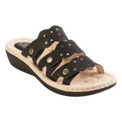 You won’t have to sacrifice comfort for style with these Womens Cliffs by White Mountain Caring smooth wedge slide sandals. These comfortable shoes include three adjustable perforated straps and a padded footbed.
