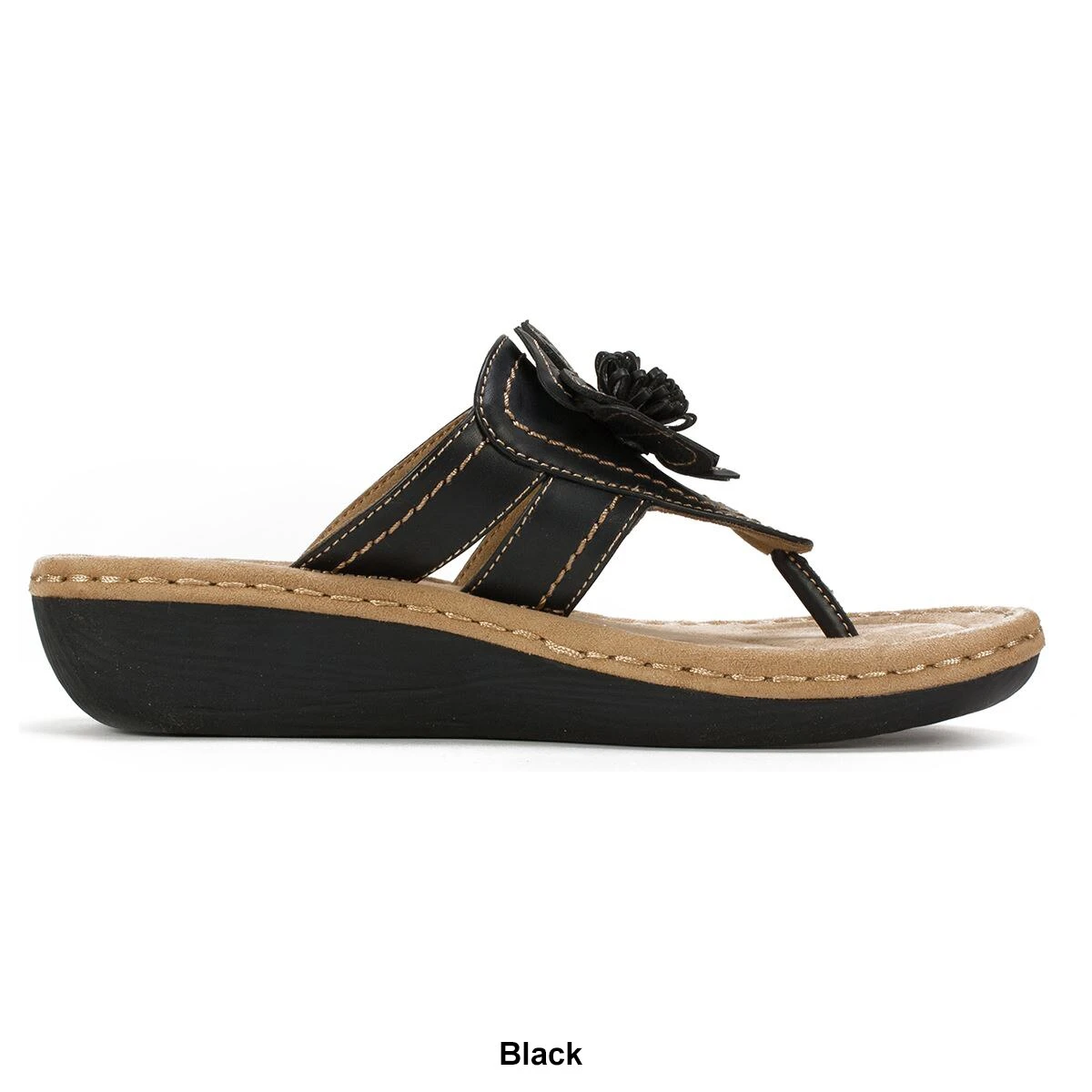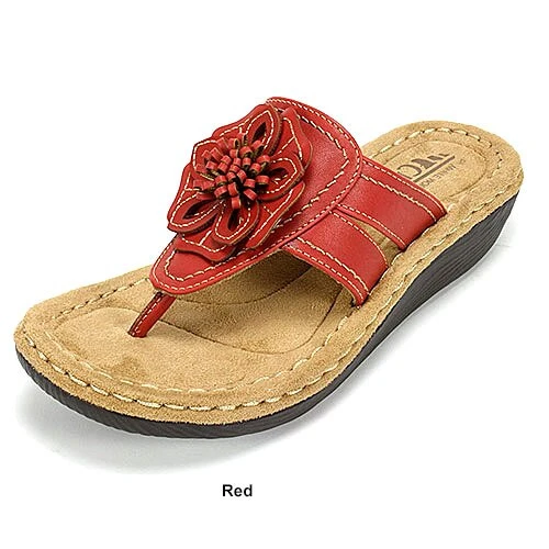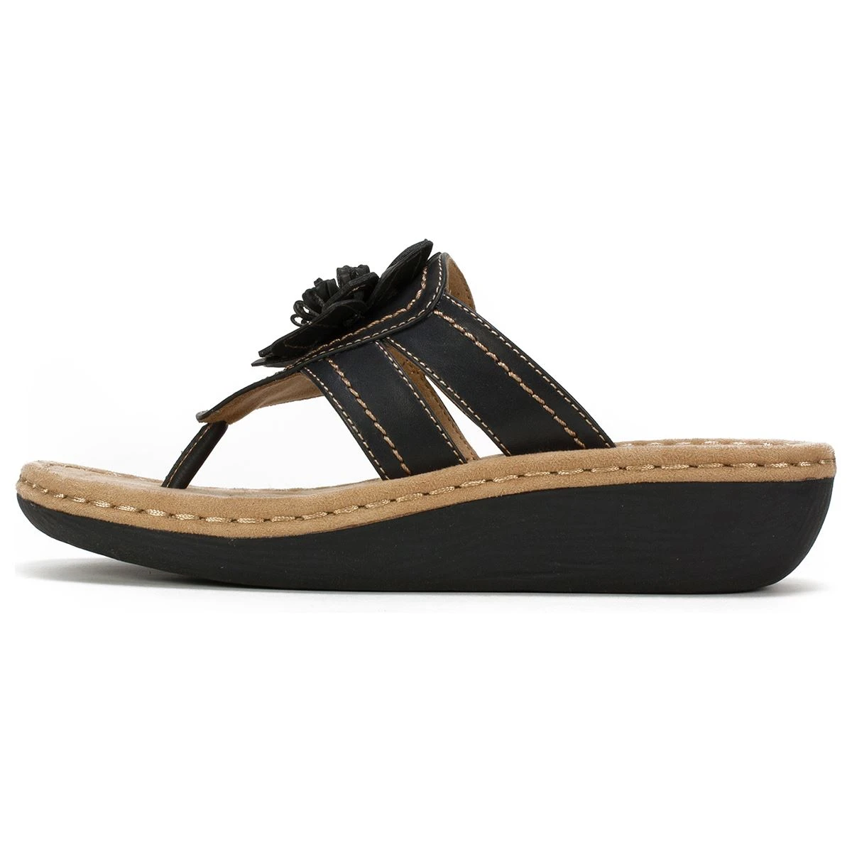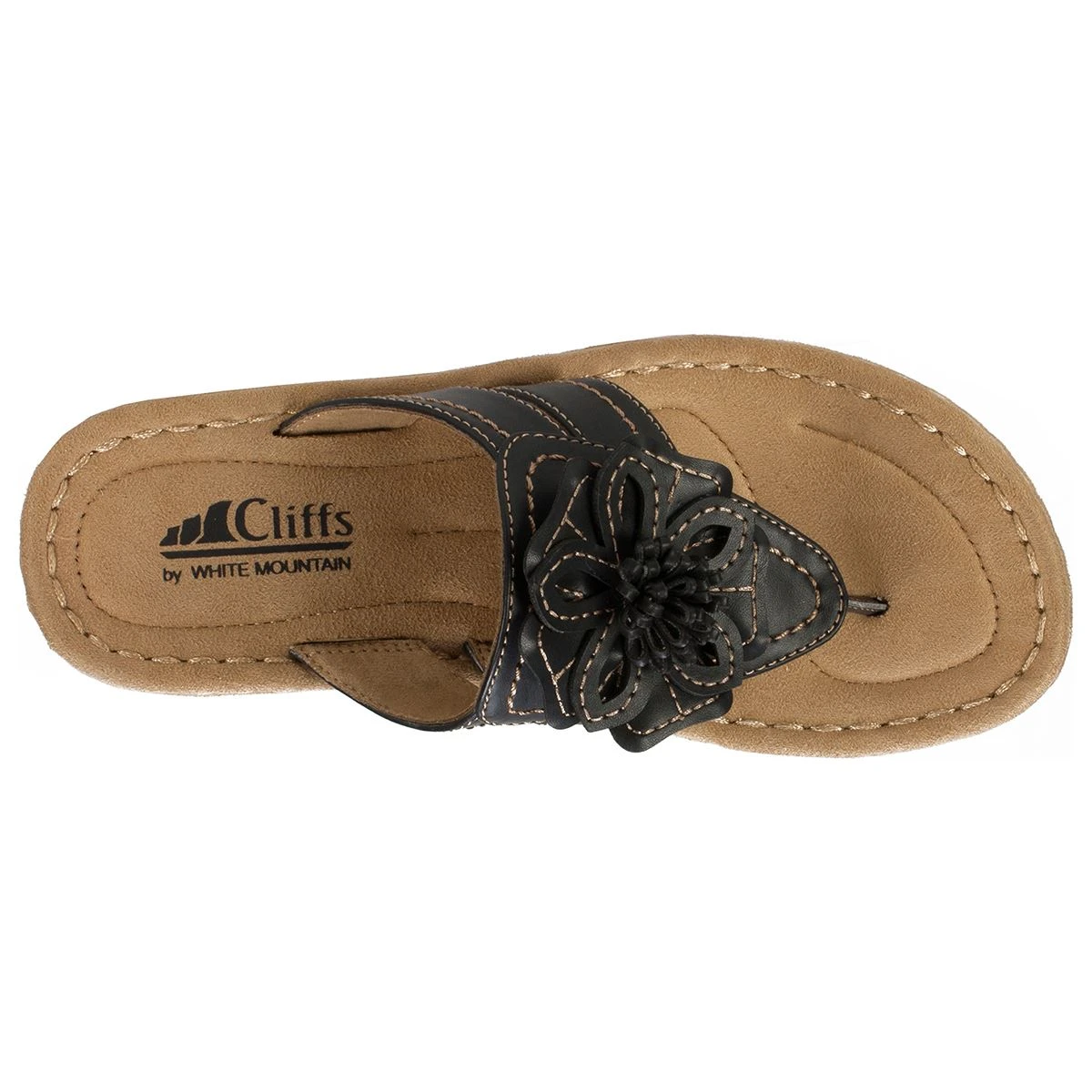 These Womens Cliffs by White Mountain Carnation wedge sandals are made with PU leather uppers and have a beautiful contrast-stitched floral applique. They feature Cliff’s signature soft memory foam cushioned comfort insoles and flexible rubber outsoles.