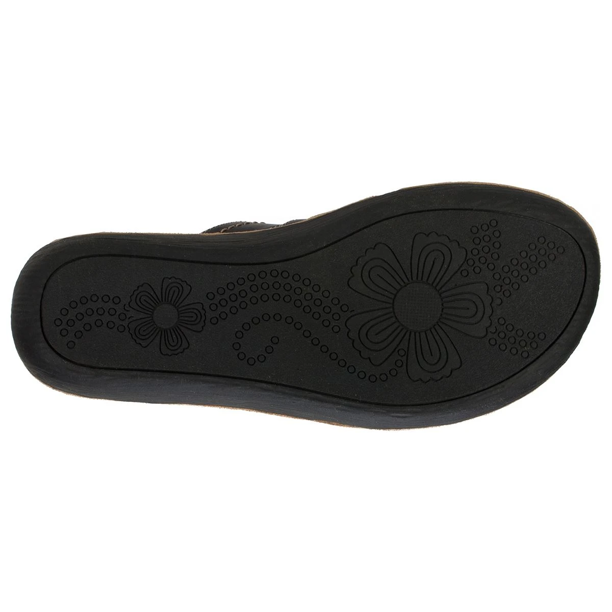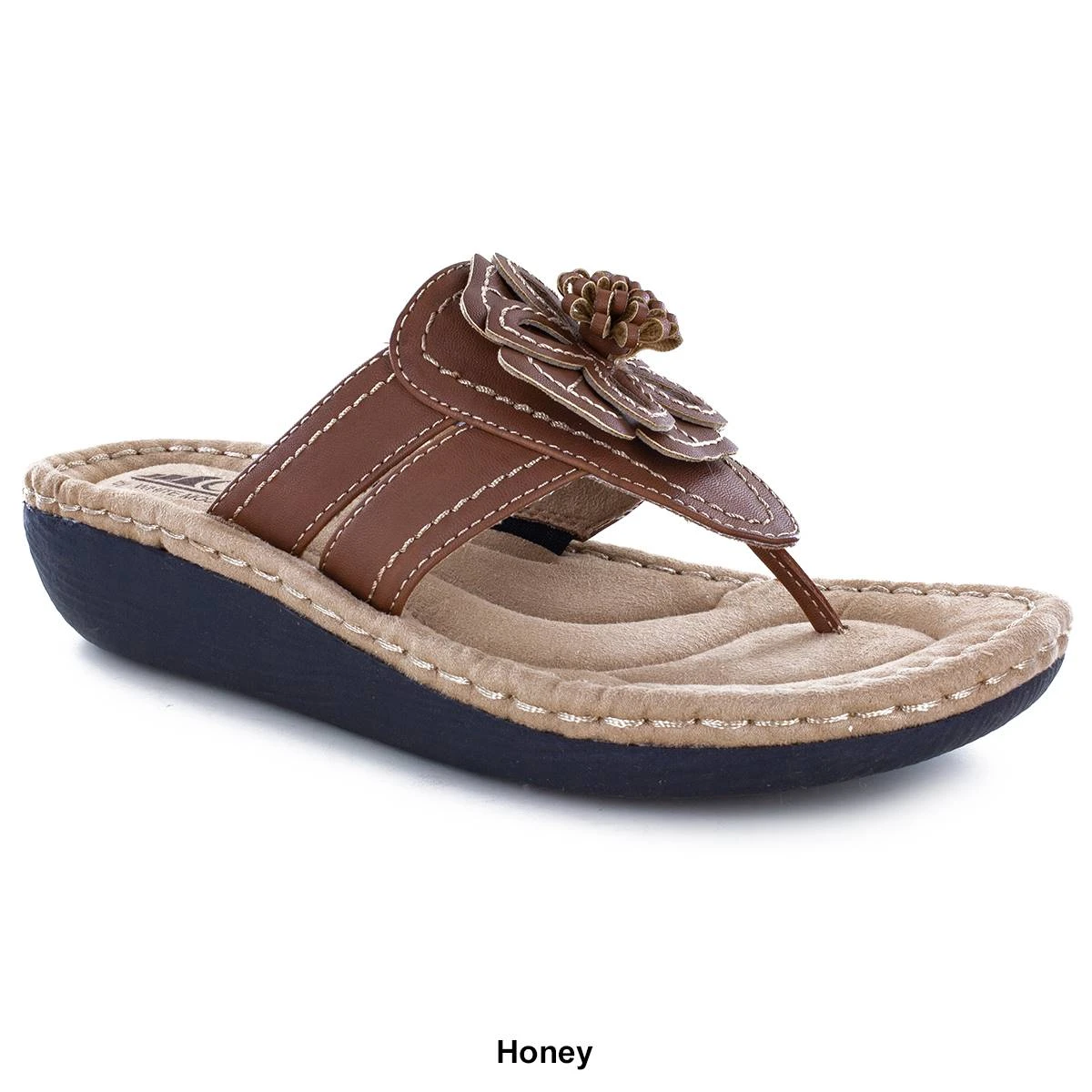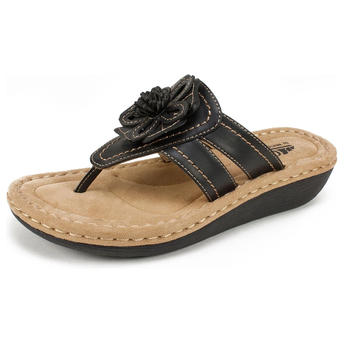 These Womens Cliffs by White Mountain Carnation wedge sandals are made with PU leather uppers and have a beautiful contrast-stitched floral applique. They feature Cliff’s signature soft memory foam cushioned comfort insoles and flexible rubber outsoles.