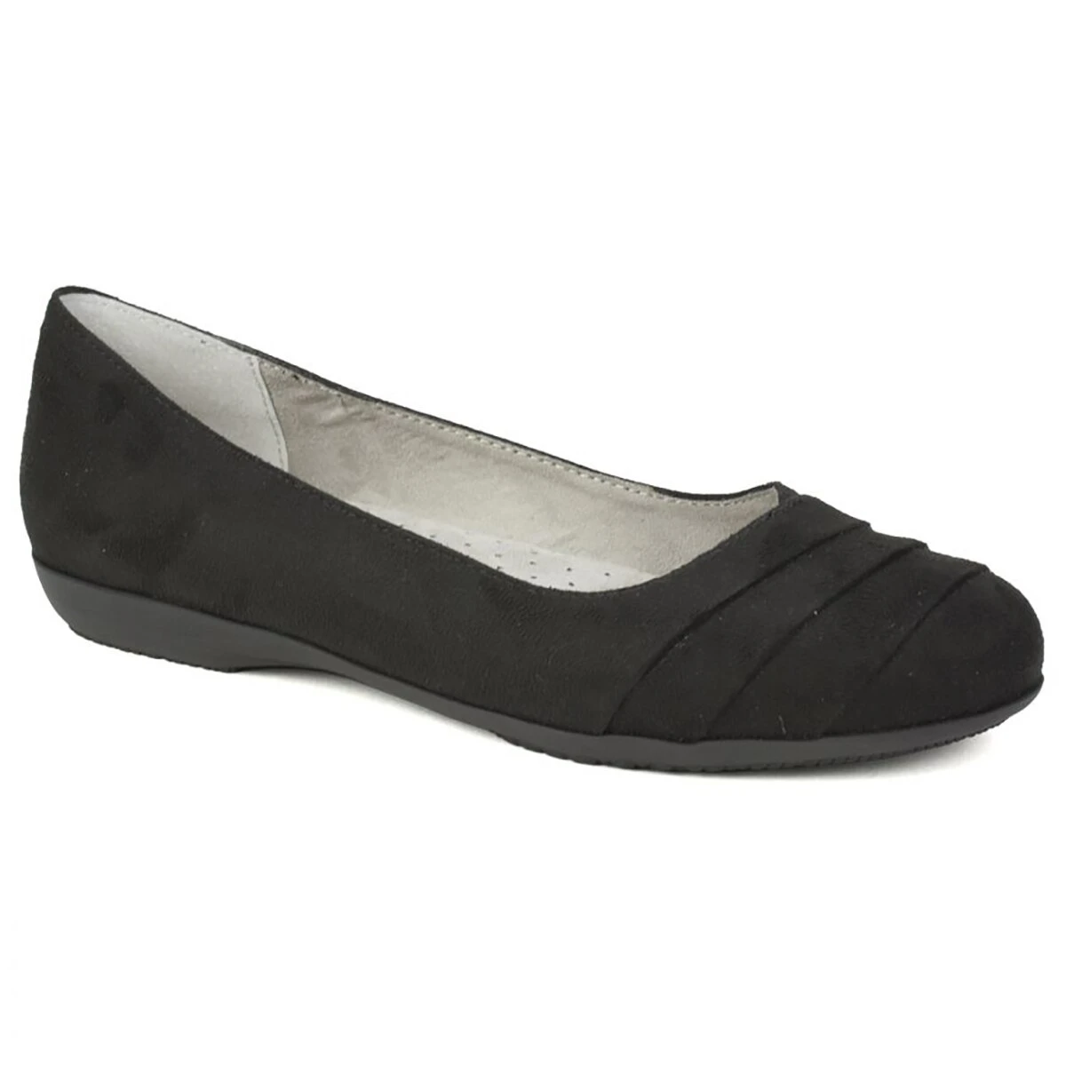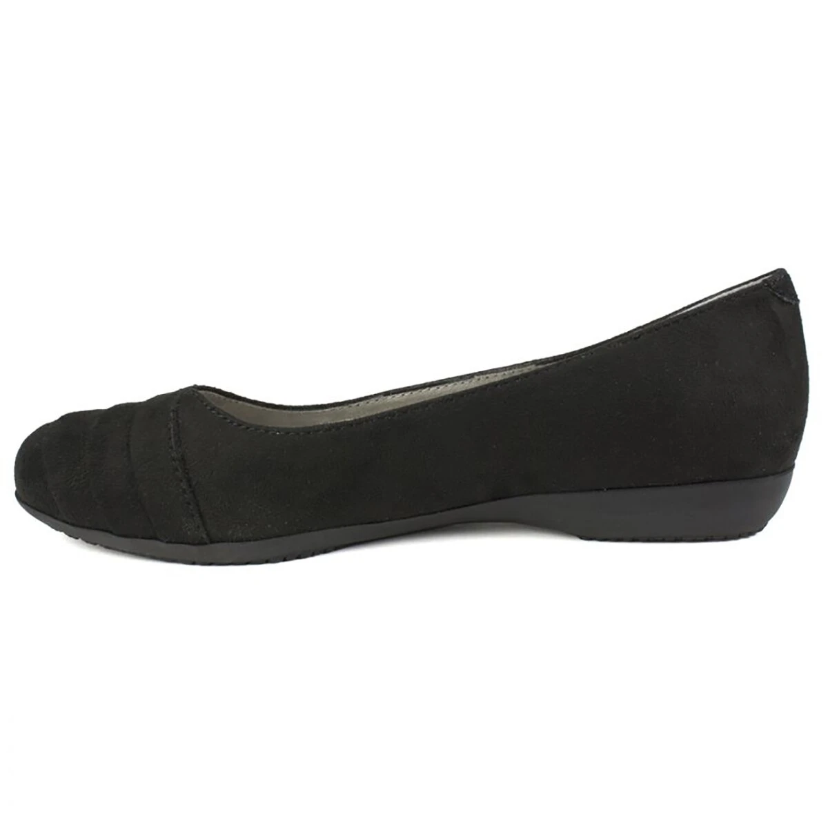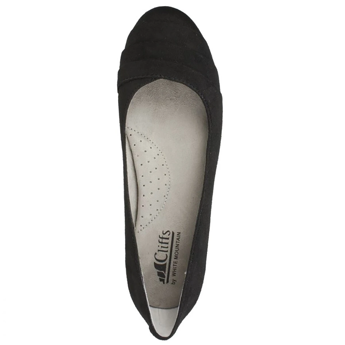 Simple for the everyday business lady are the Womens Cliffs by White Mountain Clara faux-suede ballet flats with a flexible sole. The round-toe design offers an easy on-off detail with a subtle overlaid seam and man-made outsole.Also available in Wide Widths.