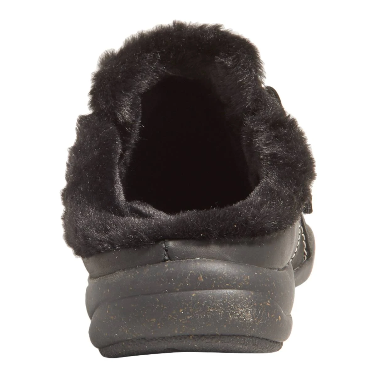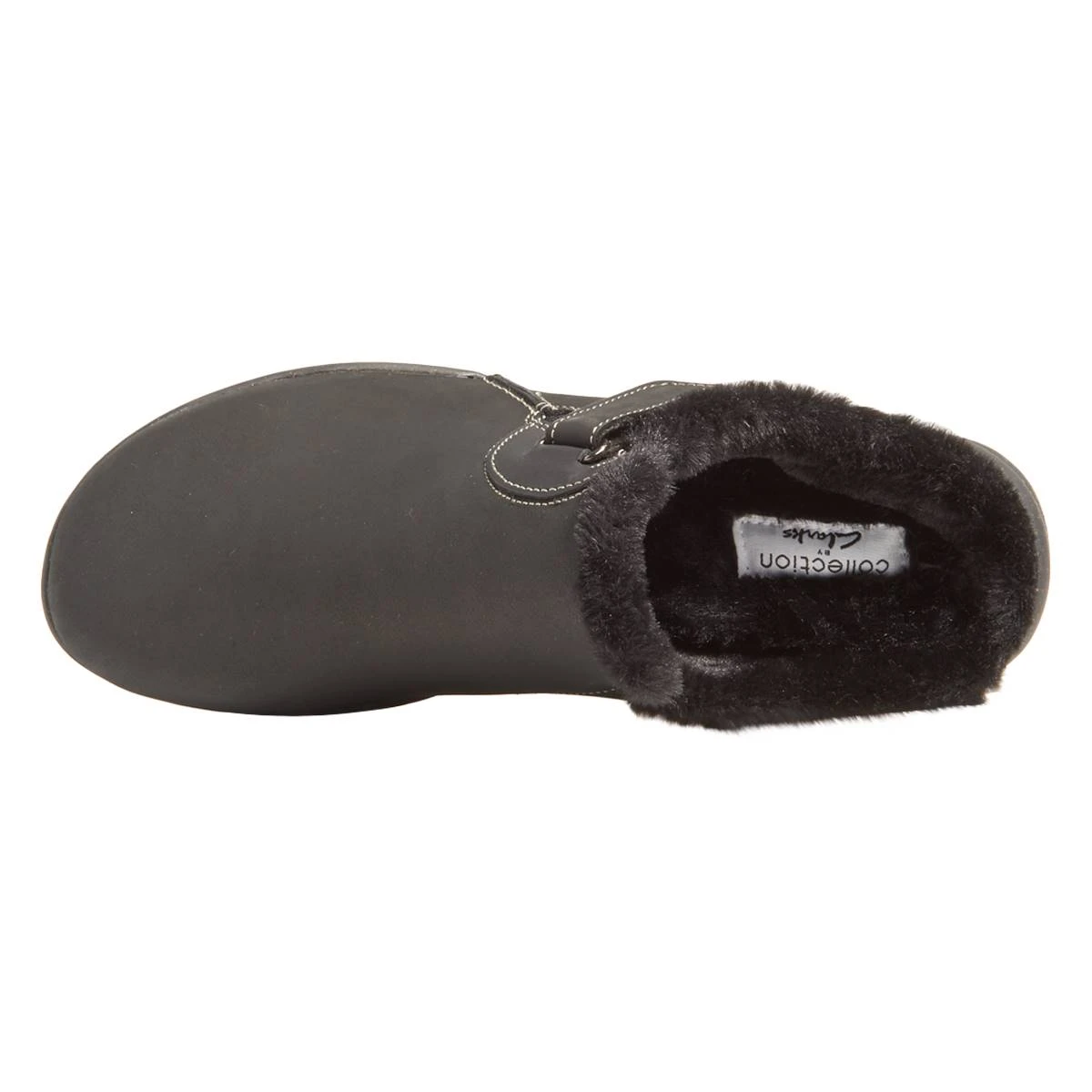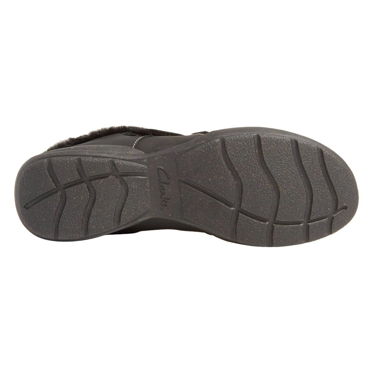 Slip into a comfortable and warm style with the Womens Clarks® Roseville clog. This shoe features a synthetic leather upper with a side hook-and-loop closure to keep your foot secure. The soft faux fur lining rides on a padded footbed and provides the ultimate comfortable feel. The outsole is rubber and has great traction for walking. Wear at home or to run your errands – you will love them either way!Also available in Wide Widths.