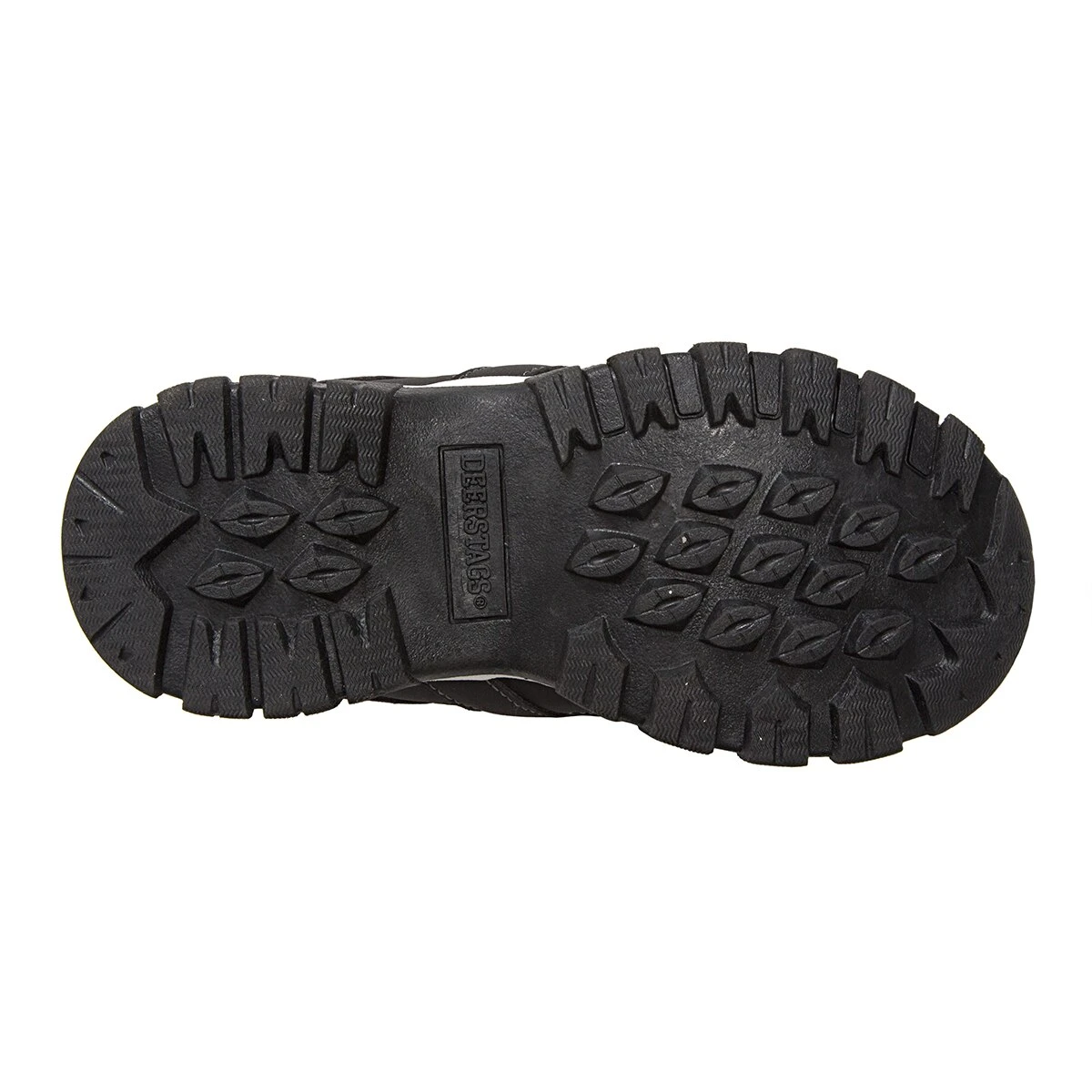 Let your adventure begin with the Big Kids Deer Stags® Drew hiker boots. The water-resistant construction guarantees dry feet in wet conditions, the abrasion-resistant toe cap and heel for added protection, and the gusseted tongue keeps debris out. What more can you ask for in a boot? Other than its awesome style, the padded insole, thick cushioned collar, and soft fabric linings will keep your child comfortable all day long! The classic lace-up upper features mixed materials for a cool outdoorsy look.