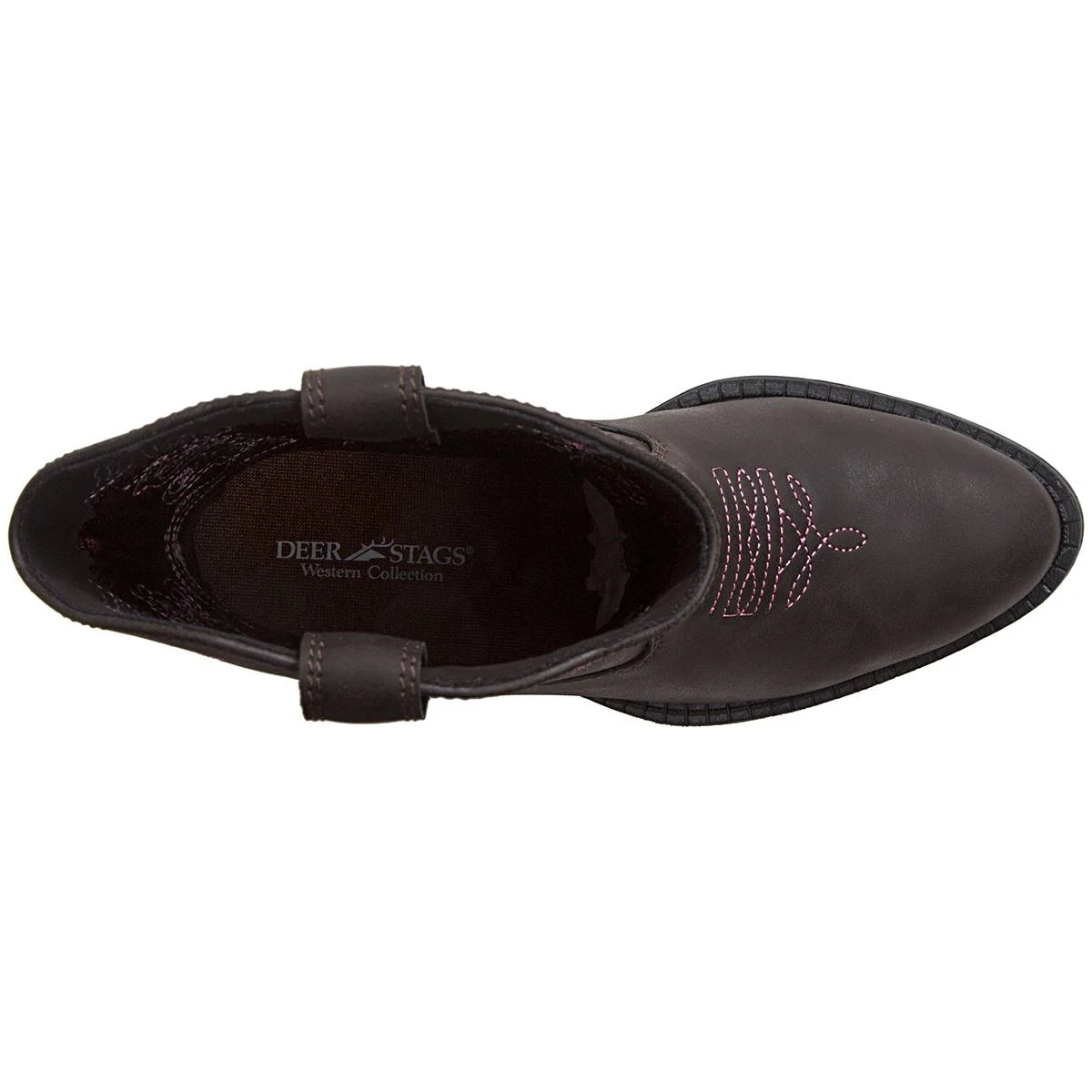 Step up your child’s style with these Girls Deer Stags® Western Boots! These boots feature a faux leather upper embroidered in a classic western style with a TPR outsole. The padded insole keeps your child comfortable to run around while the pull-on straps and a wide opening helps get the boots securely on their foot without the hassle.