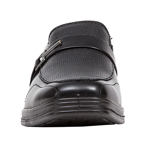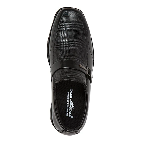 The Boys Deer Stags® Bold loafers are designed with an embossed vamp and metal buckle detail. The classic EVA footbed and durable outsole will have him loving this shoe! The loafers showcase a slip on style with elastic gore for easy on/off. They are also padded around the ankle to provide for extra comfort.