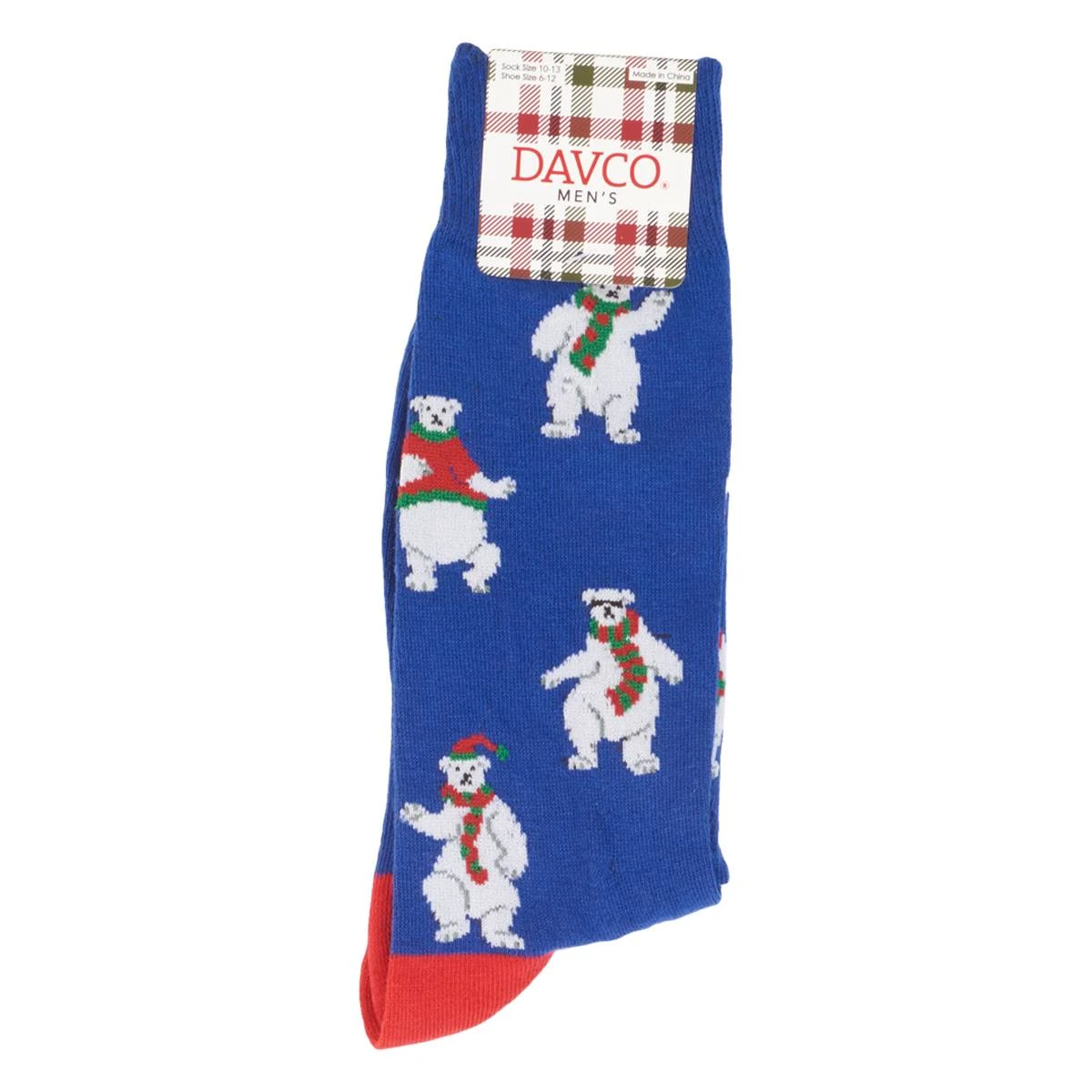 Brighten up your holiday look with these fun and snazzy Mens Davco polar bear dance socks.