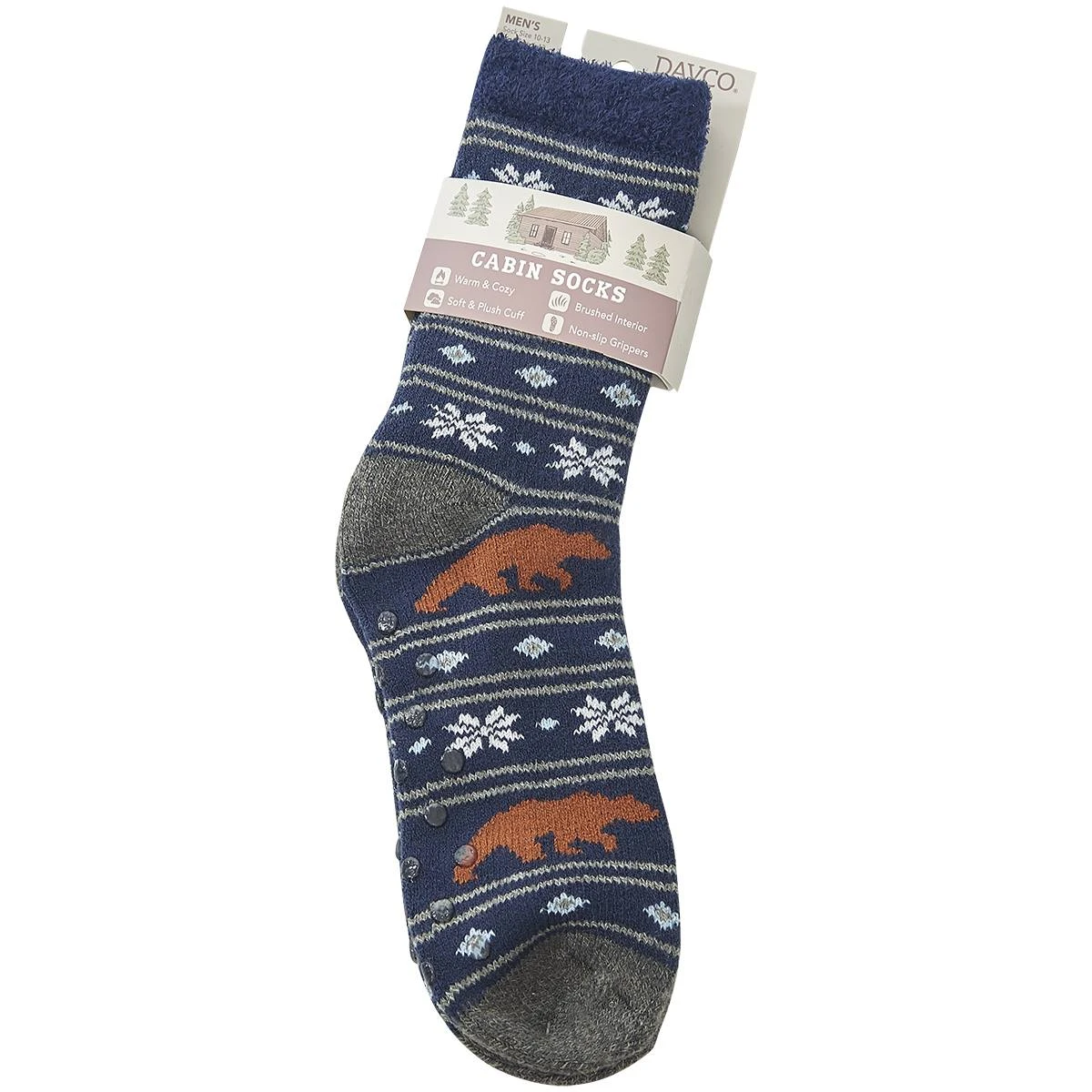 Keep your toes warm with these comfy Mens Davco cabin bear socks. These socks feature a soft & plush cuff, non-slip grippers, and brushed interior for added warmth.