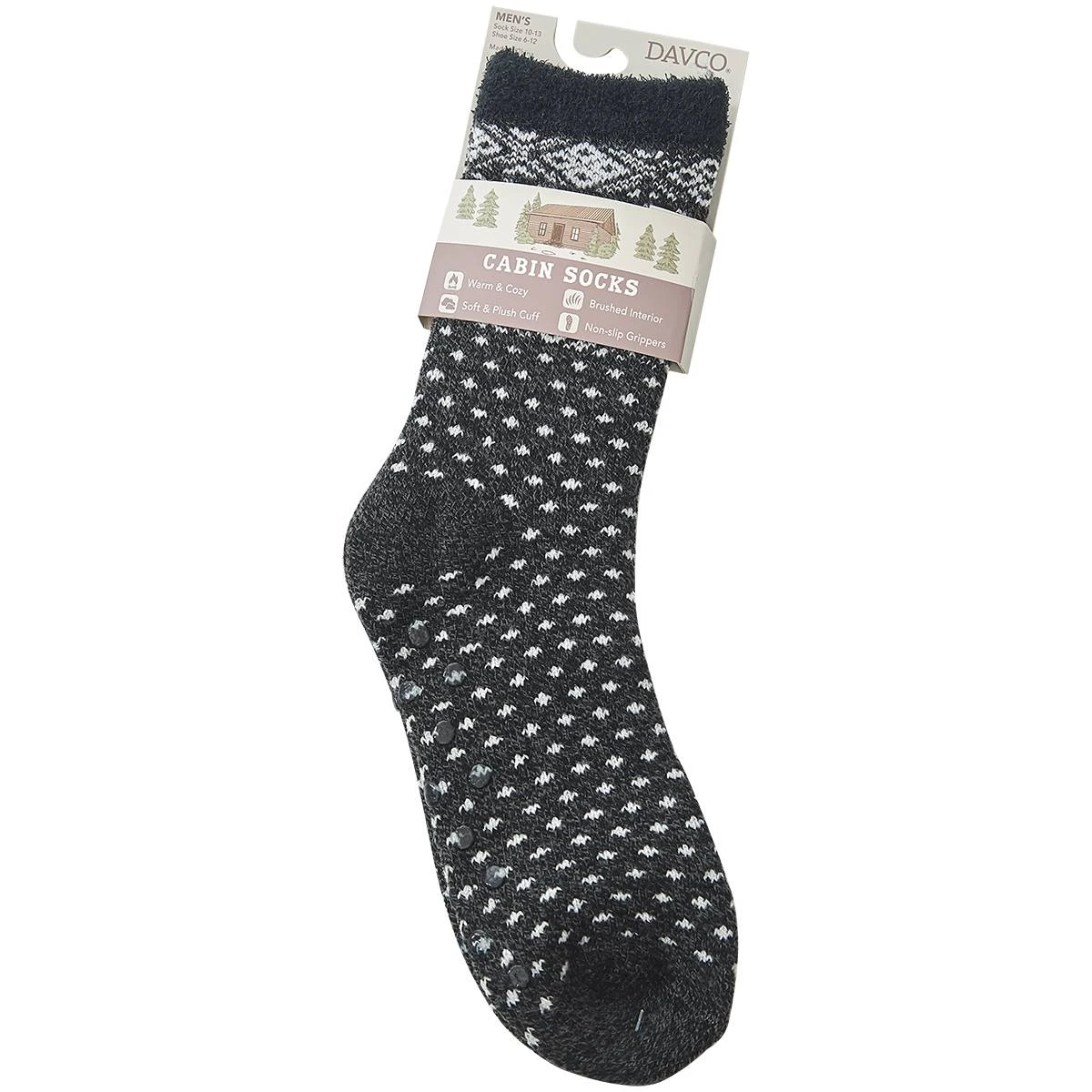 Keep your toes warm with these comfy Mens Davco fair isle dot slipper socks. These socks feature a soft & plush cuff, non-slip grippers, and brushed interior for added warmth.